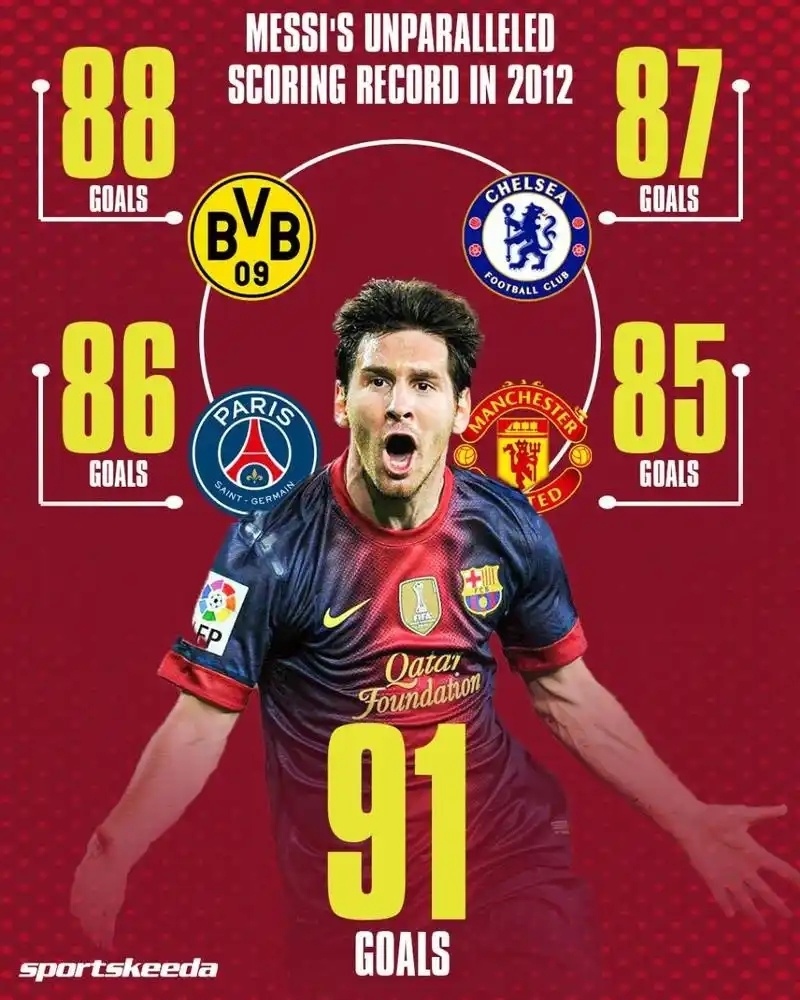 以姆巴佩目前的状态和进球效率,还是有很大可能性冲击自然年第二多进球纪录的。但自然年第一多进球纪录,也就是由梅西在2012年所打入的91个进球的纪录,这是一个遥遥无期,遥不可及,甚至可以说前无古人后无来者的神级纪录。未来足坛若没有新的球王诞生,梅西91球这个纪录无人能破!