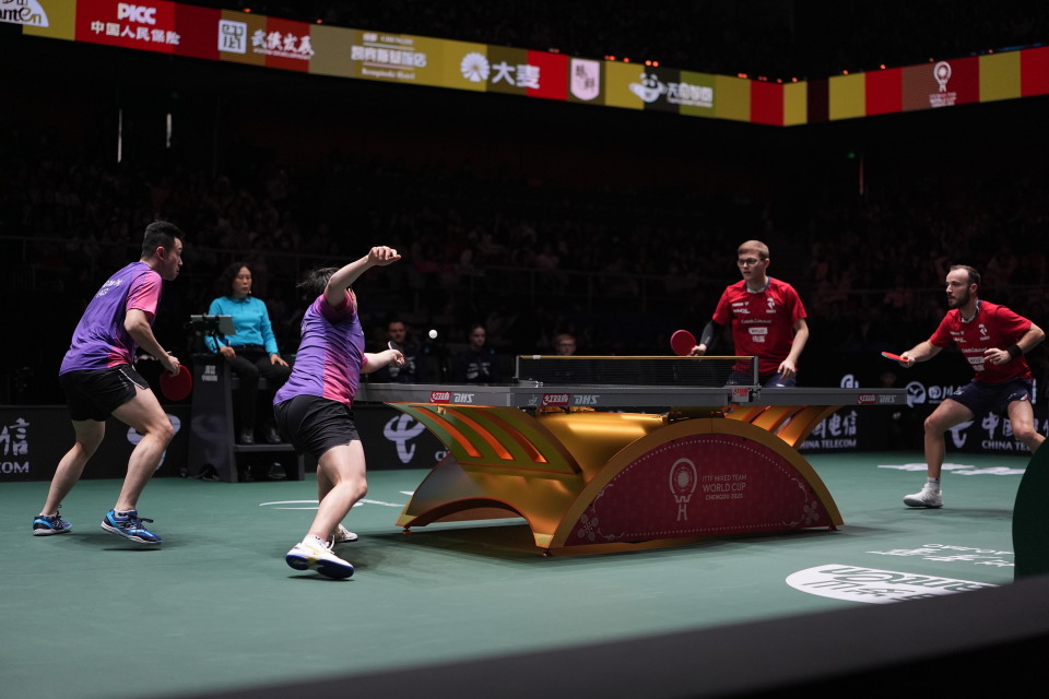 紧接着,中国香港队陈颢桦/黄镇廷组合与法国勒布伦/高茨组合上演男双对决,中国香港队将总分追至6:6。最终在第五盘女双比赛中,中国香港队朱成竹/杜凯琹组合对阵法国队袁嘉楠/帕瓦德组合,以总分8:7锁定胜局。