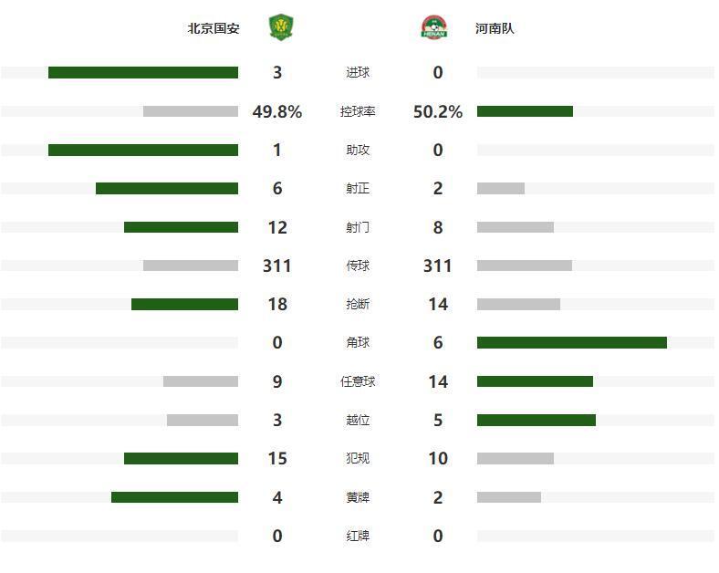 余下的时间,北京国安牢牢掌控着局面,没有给比分落后的河南任何起势的机会,比赛最后时刻,张玉宁在禁区内造成了黄锐烽犯规,又为国安赢得一粒点球,不过法比奥的点射被王国民扑出,随后主裁示意王国民提前移动,让国安重罚点球,这一次法比奥把握住了机会,将比分定格为了3-0。