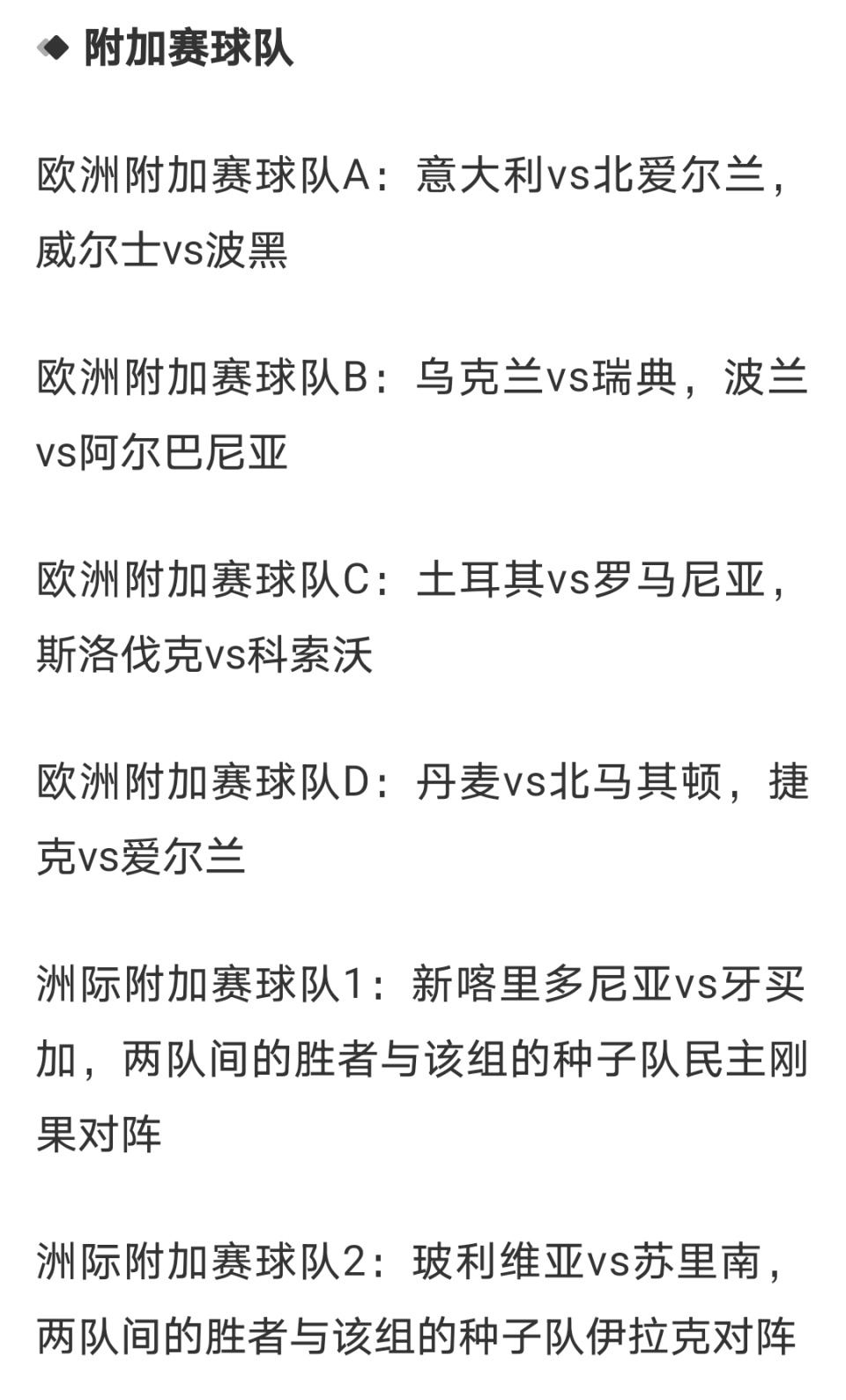 附:阿根廷和西班牙不会在决赛之前相遇,法国和英格兰也不会在决赛之前相遇。
