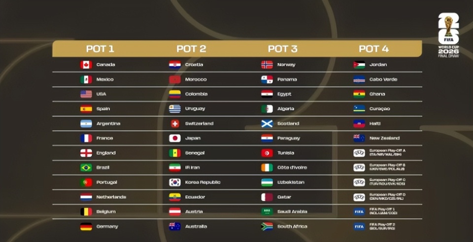 美加墨世界杯首次由32支参赛球队扩军为48队,美国、墨西哥与加拿大这3支东道主球队加上世界排名前6的国家自动落位种子队,且墨西哥将自动进入A组,加拿大自动进入B组,美国自动进入D组。剩下6个未能决出的附加赛名额国家球队则全部落户四档;由于本次抽签在4档中存在四支来自欧洲的“地雷”球队,可能包括意大利、瑞典、土耳其、丹麦等劲旅,而另一支欧洲强队挪威则落位三档,这成为了成就死亡之组的重要潜在因素。