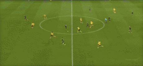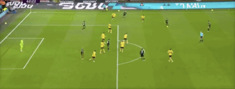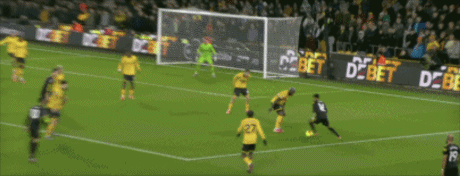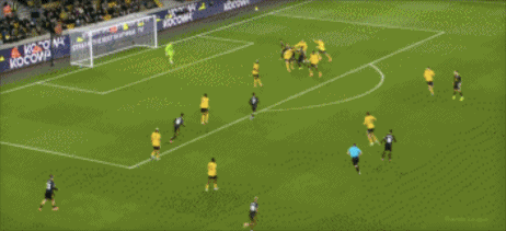 第45+2分钟,沃尔费禁区左侧倒三角传球,贝莱加德中路铲射破门,1-1!狼队扳平。