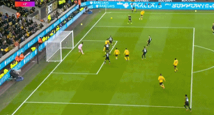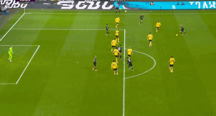 第45+2分钟,沃尔费下底倒三角传中,贝莱加德中路凌空抽射破门,狼队1-1追平了比分!