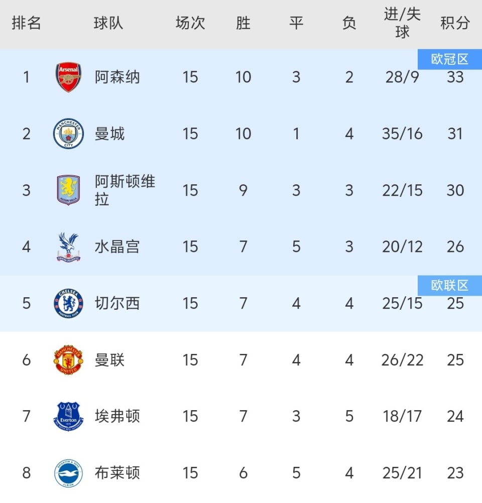 北京时间12月9日,英超联赛第15轮战罢,曼联客场4-1大胜狼队,近3轮取得了2胜1平的战绩,目前曼联7胜4平4负,积25分,排名来到了第6位,积分已经追平了切尔西,这样踢下去曼联本赛季是有机会争夺一张欧冠门票的,他们距离榜首的阿森纳也仅仅只有8分的差距,曼联终于有些起色了!