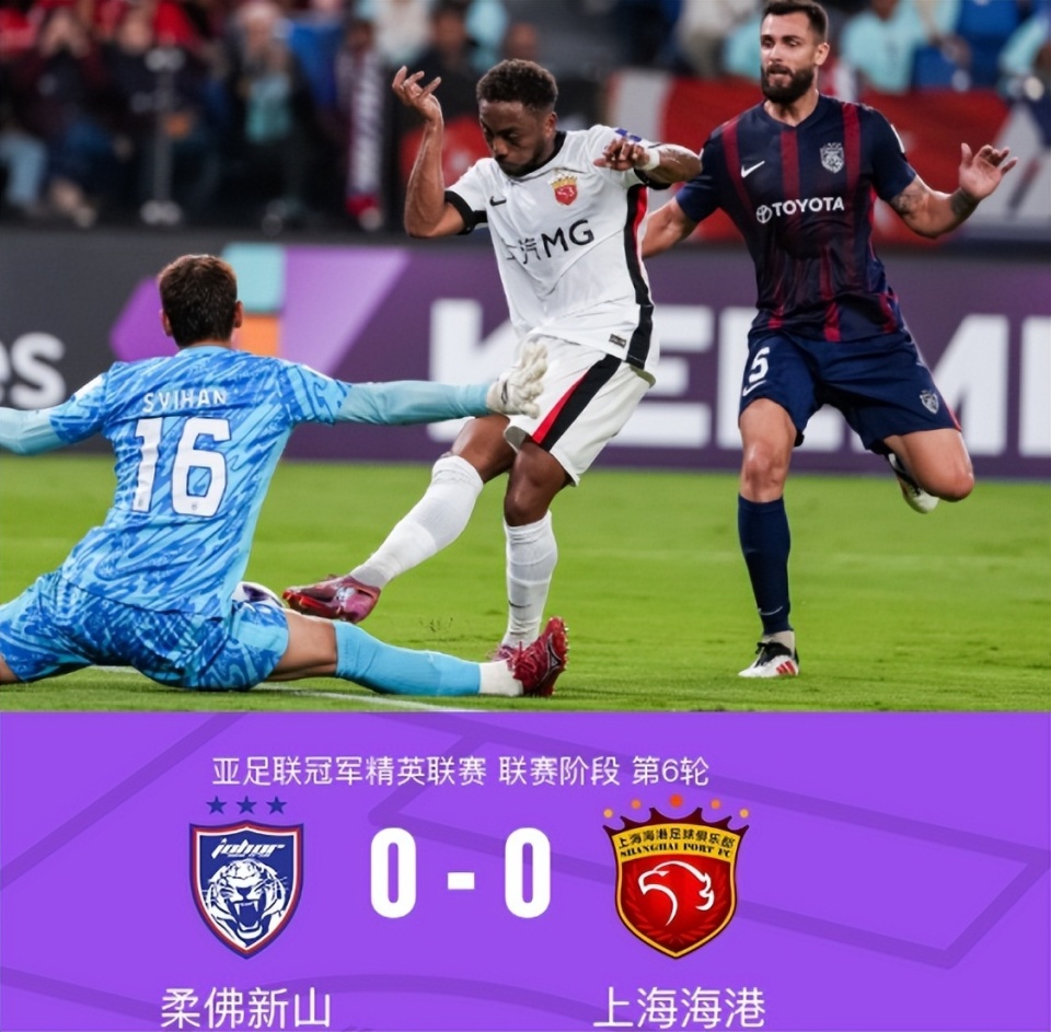 北京时间12月9日晚,亚冠精英赛联赛阶段第6轮,上海海港0:0战平马来西亚球队柔佛新山。