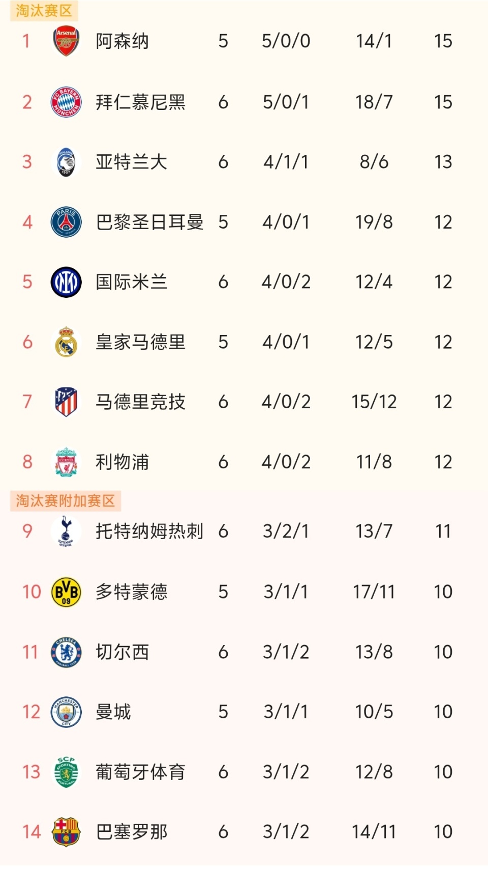 随着巴萨2-1、利物浦1-0绝杀,欧冠最新积分榜出炉:巴萨第14,利物浦第8!