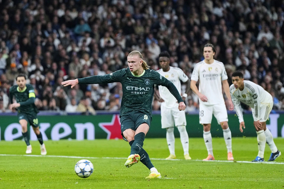 第42分钟,曼城前场禁区内进攻,在争夺传中球时,皇马球员吕迪格放倒了哈兰德,送给了曼城一个点球,哈兰德亲自主罚打进,2-1,曼城反超了比分!