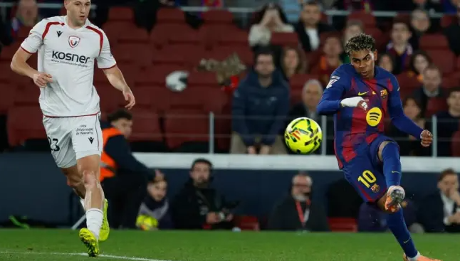 14分钟,亚马尔传中,费兰门前垫射打高。