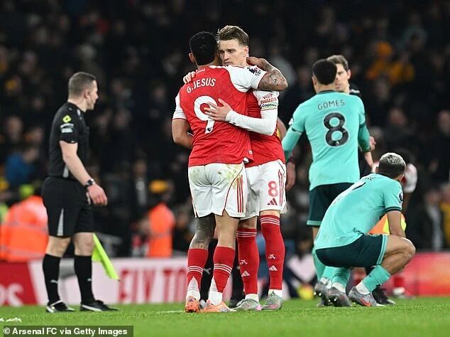 英超第16轮,阿森纳主场上演补时绝杀,2-1惊险击败狼队,先赛一场暂时领先曼城5分。热苏斯在终场前的头球攻门被倒霉的狼队后卫莫斯克拉挡入自家大门,让阿森纳避免了主场丢分的尴尬。本场比赛,枪手的表现不佳。上半场,球队6次射门无一命中目标;反倒是黄喜灿抓住一次反击机会,迫使大卫·拉亚做出扑救。