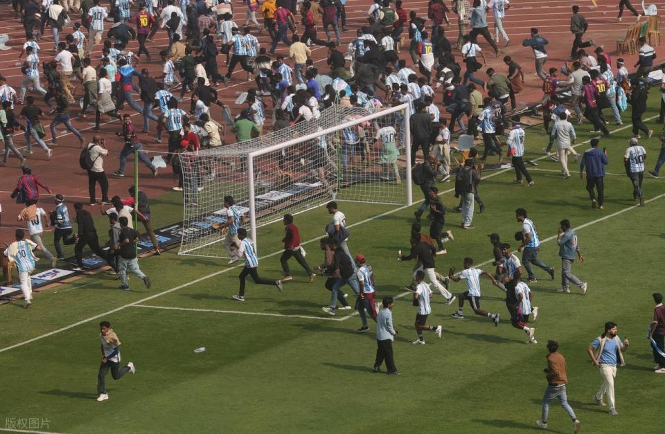 主办方的问题堪称全面失控:一是活动合规性缺失,作为私人公关公司主导的商业活动,既未向印度足协申请审批许可,也未提前通报足协,全程缺乏专业体育活动监管;二是安保配置极度失衡,所有安保力量全集中在梅西、随行人员及当地政客、官员周边,用于维护看台球迷秩序、引导人流的安保几乎空白,导致官员扎堆围堵梅西合影,霸占所有互动资源,数万高价购票球迷(票价5000-25000卢比)根本看不清偶像;三是流程规划混乱,原定的互动环节、致敬环节毫无应急预案,仅因现场秩序波动就直接取消,高价门票对应的体验严重缩水,最终引发球迷冲场、砸设施等过激行为,场面一度失控到需警方用警棍驱散。