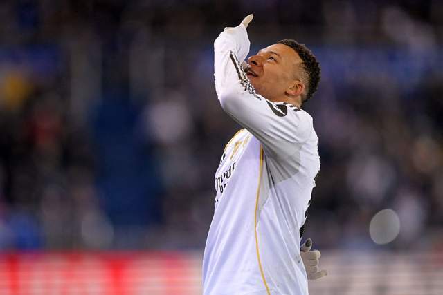 第24分钟,居莱尔中场断球,贝林厄姆直传策动反击,姆巴佩带球长驱直入,内切兜射破门,皇马打破僵局,1-0!姆巴佩本赛季西甲17场17球,在射手榜上遥遥领先。