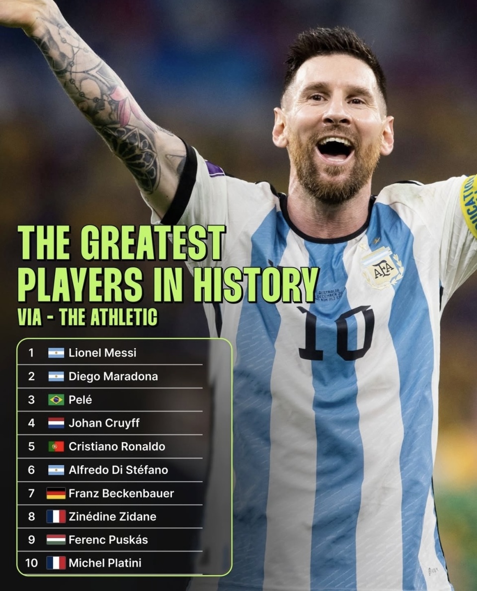 最近The Athletic发布了史上最伟大球员榜单,梅西、马拉多纳、贝利等传奇都被排在前十。名单里既有普拉蒂尼、普斯卡什这样的老一代巨星,也有C罗这样的现役标志人物,但大罗、罗纳尔迪尼奥、哈维等名字却没能挤进来。谁该在前面、谁又被忽视,这份榜单一出来就注定要吵个不停,也正好借这个机会把这些名字背后的故事重新翻一翻。