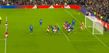 伤停补时第4分钟,B费角球传中,特吕费尔冒顶,卡塞米罗后点小角度头槌得手,曼联再度取得领先,2-1!