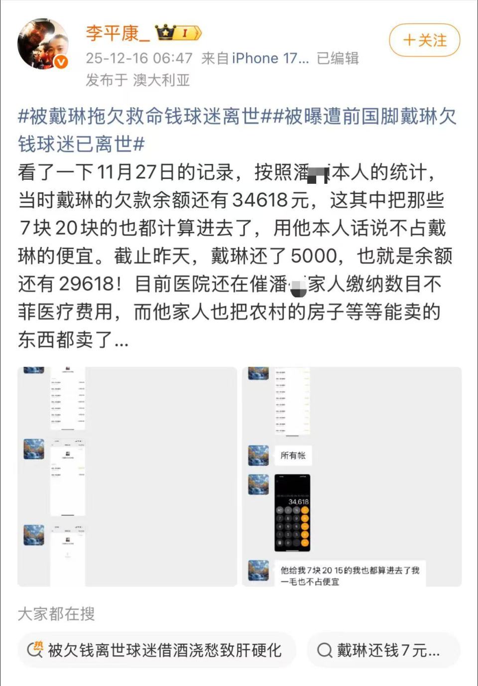 被欠钱的山东球迷已去世,戴琳在其离世当天还5000元,球迷家属发文