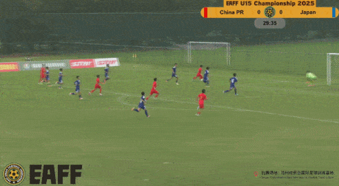 第34分钟,日本队打出快速反击,沢口荣太接到队友底线倒三角传中后轻松包抄破门,U15国足后防线集体走神,0-1落后。