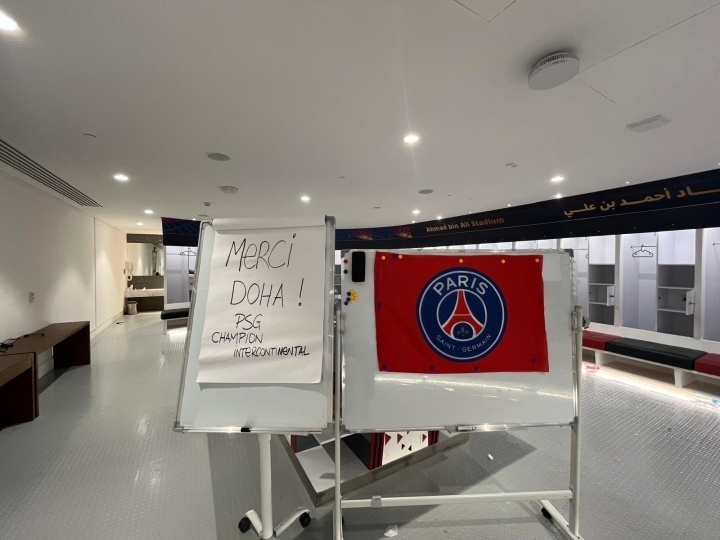 更令人动容的是,巴黎全队在欢庆夺冠的同时,并未忘记尊重赛场与主办方。俱乐部官方晒出的照片显示,球员们在离开球场前,将更衣室从头到尾打扫得干干净净,没有留下任何垃圾,还在白板上写下“谢谢多哈!来自巴黎圣日耳曼——洲际杯冠军”的留言。这份细节之处的素养,让这支六冠王球队更显可爱与可敬。