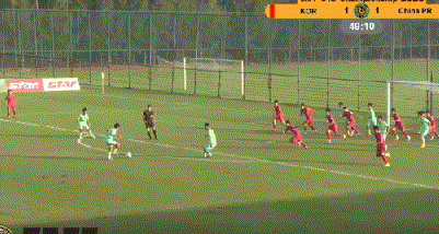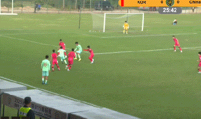 第42分钟,韩国队右侧角球开到门前,崔俊赫在门前近距离头槌破门帮助韩国队将比分扳平。