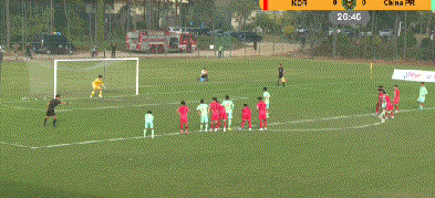 上半场第19分钟,中国队球员在禁区左侧迎球打门,再次稍稍偏出。