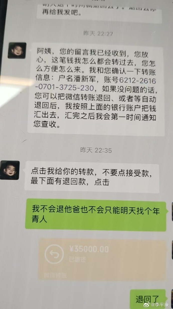 李平康:戴琳已经在今天将欠潘硕的钱还清,还多给了5000多