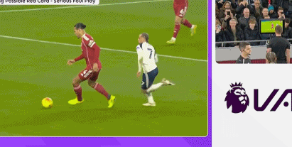 第30分钟,场上出现突发情况,哈维-西蒙斯拼抢当中踩踏范戴克小腿,裁判回看VAR之后,果断出示红牌,热刺剩下10人作战。