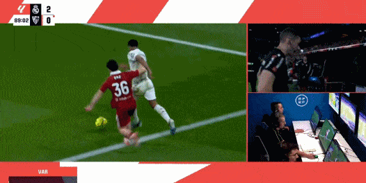 第89分钟,贝林厄姆下底突破造点,裁判观看VAR后取消点球判罚。