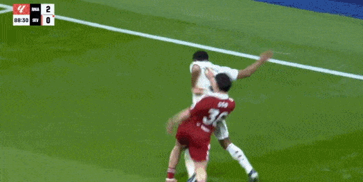 第68分钟,马尔考飞铲贝林厄姆犯规,吃到第二张黄牌染红下场,塞维利亚剩余时间少打1人。