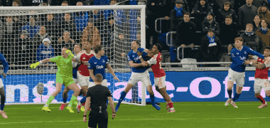 下半场开始后,埃弗顿继续祭出三板斧,阿森纳也以快制快,第50分钟,萨卡禁区内的推射已经令皮克福德无计可施,防守球员完成关键解围。