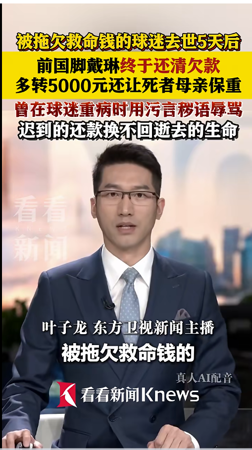 被拖欠救命钱的球迷去世5天后,前国脚戴琳终于还清欠款,此前戴琳曾因欠钱成为失信人