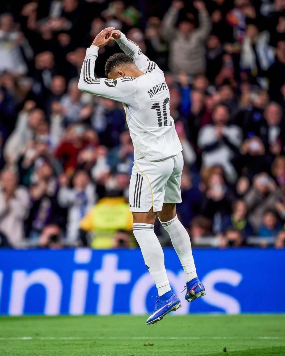 雷速体育12月21日讯 西甲第17轮,皇马主场2-0战胜塞维利亚。姆巴佩点射破门,今年总共为皇马打入59球,追平C罗保持的皇马队史自然年进球纪录。