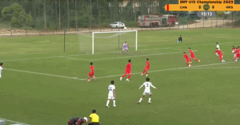 在2025年U15东亚杯小组赛第三轮,U15国足对阵中国香港队。盛宸熙头球破门,U15国足上半场以1比0的比分领先。