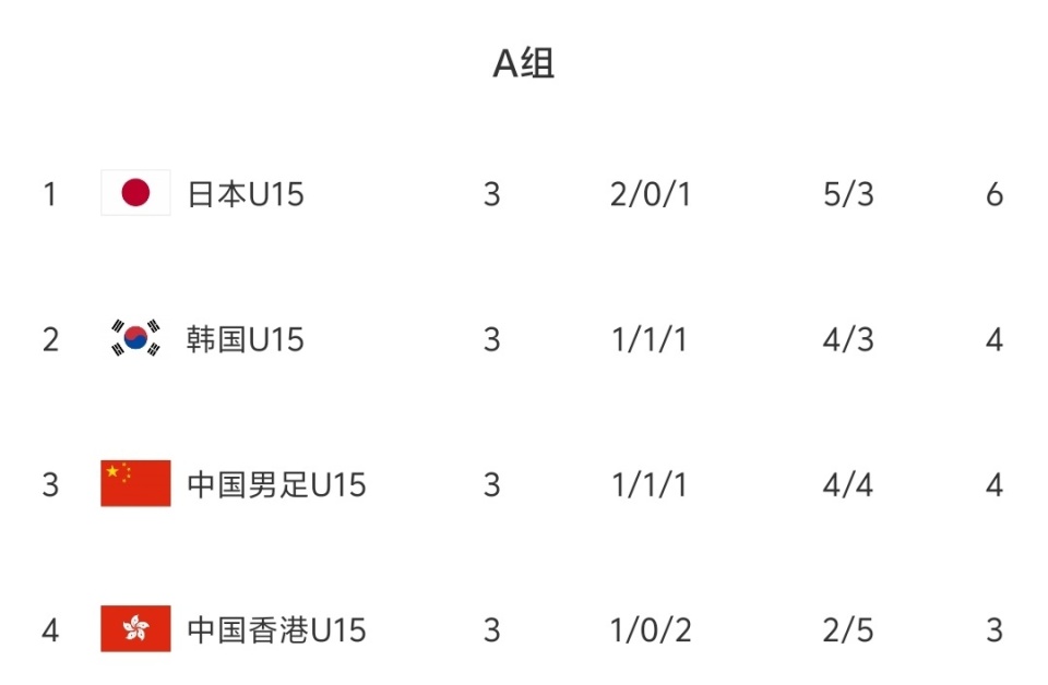 随着u15国足3-0胜香港,东亚锦标赛最终排名:中国第3、日本夺冠!