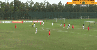 全场比赛进入到伤停补时阶段,中国U15队得到一次右侧角球机会,皮球开出之后,对方罗建锋扑球脱手,皮球直接反弹掉入球门,中国队3-0终结全场比赛悬念。