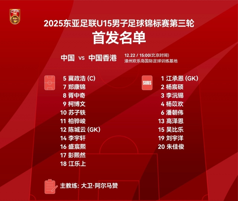 具体中国U15首发名单如下: