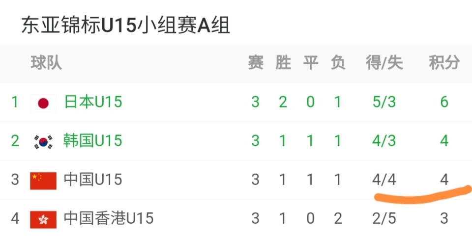 今天下午的比赛,A组的中国队迎战中国香港队,结果中国队3-0完胜中国香港队,进球分别是盛宸熙、柯博文、罗建峰(自摆乌龙)。而A组第三轮另外一场比赛在今天上午结束,日本队0-3完败给了韩国队。