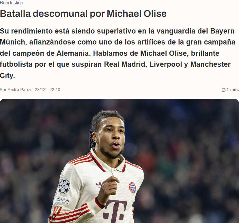 奥利塞目前的身价超过1亿欧元,拜仁方面不会考虑放走这位明星球员,但奥利塞现在受到多家豪门关注,除了皇马,利物浦和曼城也在密切关注法国边锋的表现,拜仁想要继续留住奥利塞,将面临很大的挑战。尤其是像皇马这种在世界范围内都有巨大吸引力的超级豪门,而英超俱乐部也能开出更优厚的条件,奥利塞是在水晶宫踢出来的,他适应英超当然不会有任何问题。