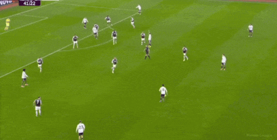 B费也有机会,由他策动的这次进攻中,在连续晃动之后,终于打出来维拉中路防守漏洞,但是最后一下被维拉封堵。