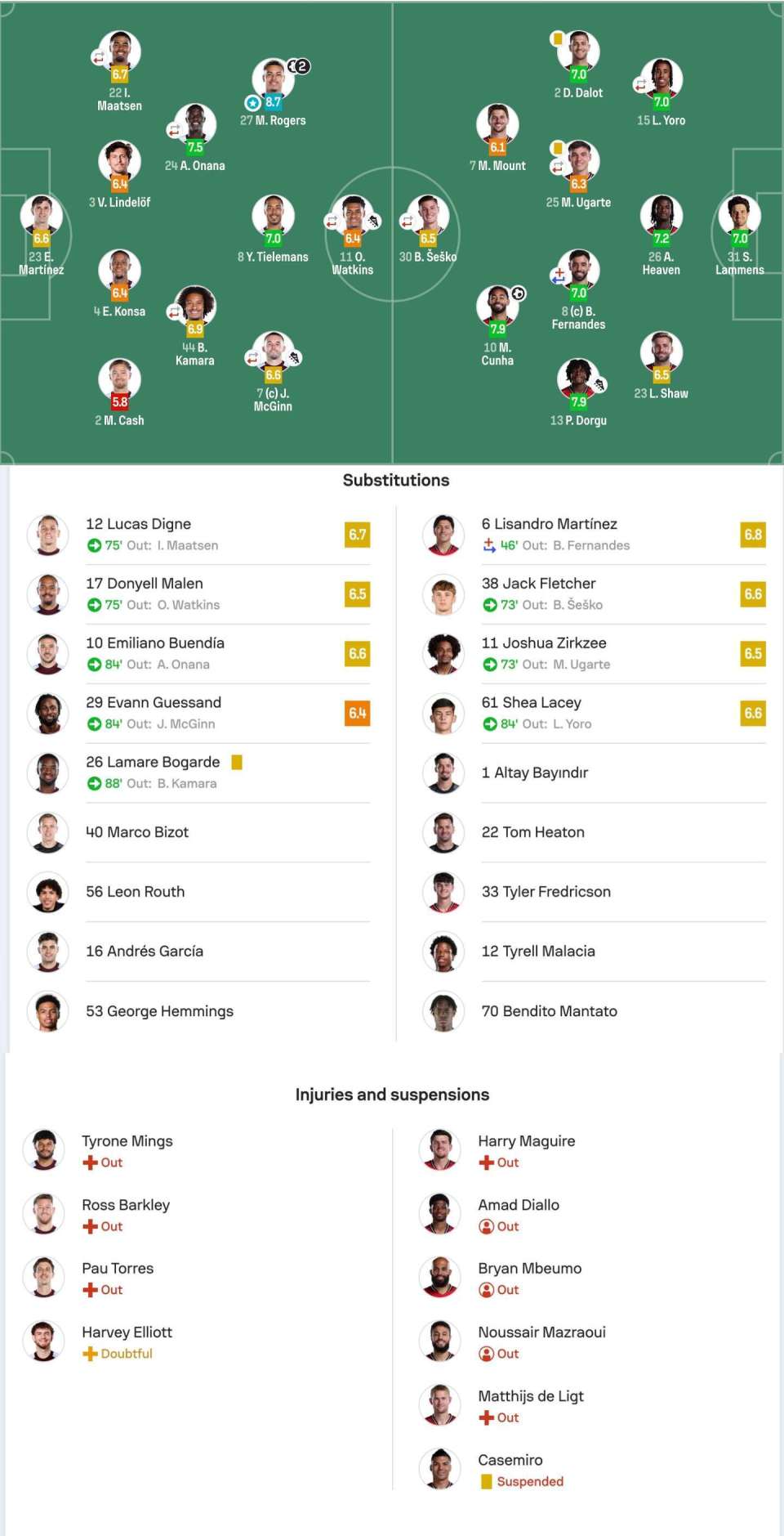 战术板 | 埃梅里让维拉重回积分榜前列,曼联需要看清夏季新援能力