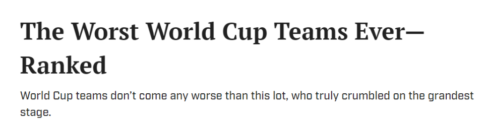 《体育画报》就带大家回顾世界杯历史上那些表现最差、最令人失望的球队。