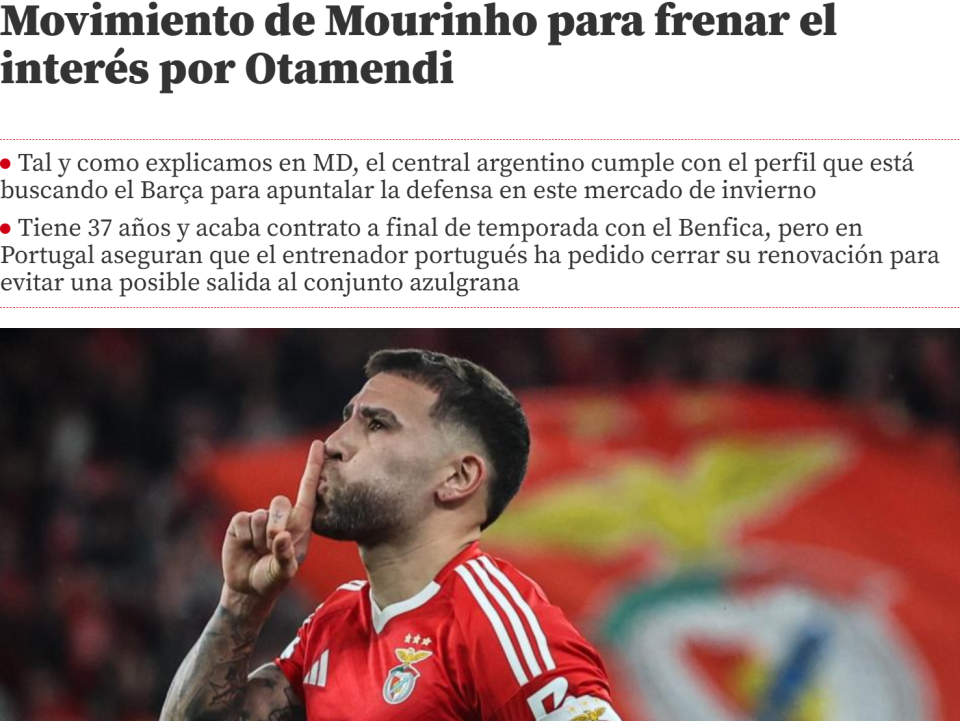 37岁的奥塔门迪是本菲卡的主力中卫,也是世界杯冠军阿根廷队成员。本赛季穆里尼奥来到球队后,对奥塔门迪也是非常信任。阿根廷人的合同将在2026年6月到期,巴萨计划在冬窗说服奥塔门迪加盟,因为他们认为奥塔门迪会很适合,他拥有丰富的比赛经验,完全有能力帮助球队。