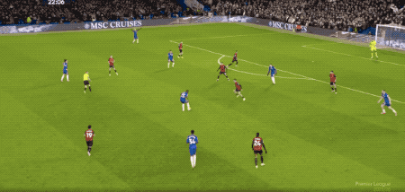 第24分钟,埃斯特旺策动进攻,加纳乔送出助攻,恩佐利用重心的变化四两拨千斤晃开防守,将球打进死角。