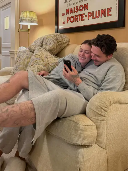 虽然布鲁克林一声不吭,但他的妻子妮可拉·佩尔茨·贝克汉姆却“有话要说”。身为富家女的妮可拉,在社交媒体上发布了一张和大布依偎在沙发中看手机照片,附文中写道:“我们可没计划穿情侣装。”