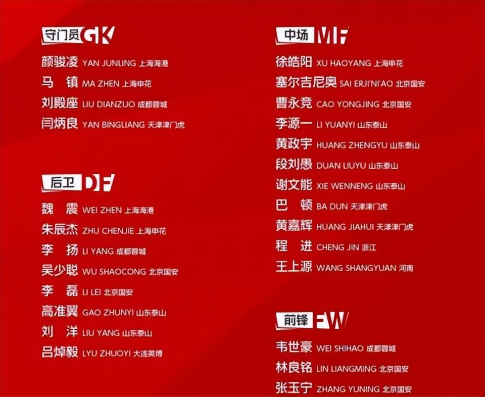 为了备战有些遥远的亚洲杯,也为了让新主帅邵佳一熟悉国足阵容,中国足协近日公布了新一期国足集训的大名单。一共有26名国脚入选。北京国安和山东泰山再次成为国脚输出大户。