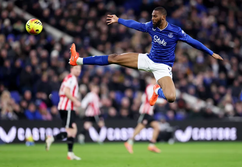 整场比赛,他几乎完全压制了埃弗顿的中卫组合。