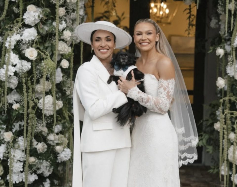 39岁女足巨星玛塔正式完婚:一身白衣 妻子是28岁前队友 已订婚5年