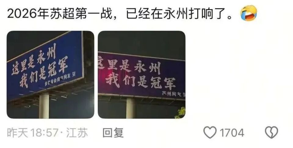 据永州融媒报道,当地已经在加紧研究怎么安排这些热情的江苏网友了。网友们更是笑疯:“留给其他太保的广告牌不多了!”“谁能想到2026年‘苏超’首战居然在湖南打响!”
