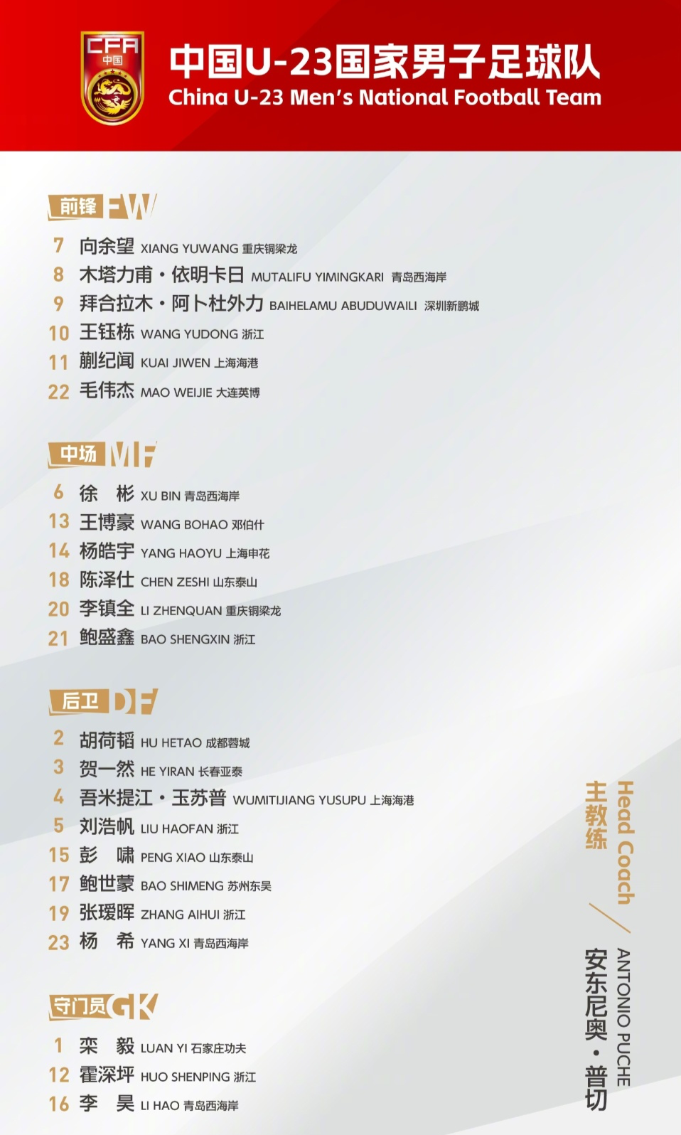 前锋:拜合拉木、王钰栋