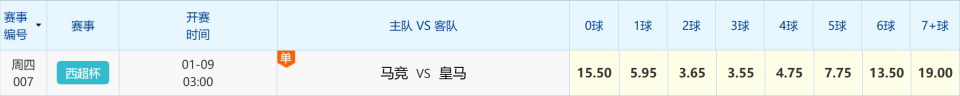 今日我们来看一场西超杯的比赛,1月9日周五凌晨3点,马竞迎战皇马。