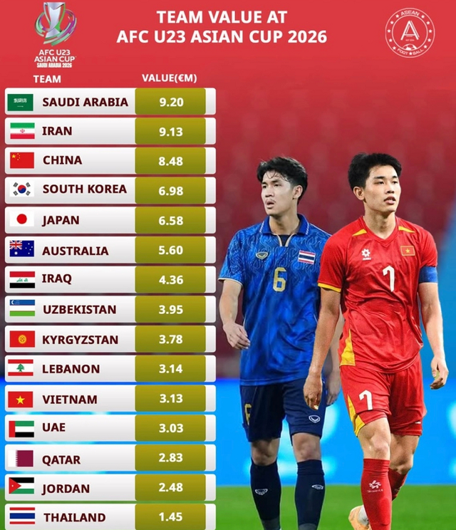 第一个,王钰栋一人身价就超过泰国的全队身价。这次U23亚洲杯上,泰国全队23人加起来只有145万欧,而王钰栋1个人的身价就超过整个泰国U23国家队,完全就是断崖式领先。这在以往的各级重大赛事中,几乎是很难出现的景象。