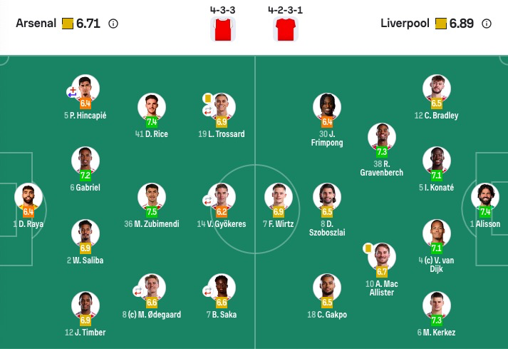 利物浦首发阵容:1-阿利松、4-范戴克、5-科纳特、12-布拉德利(95'2-戈麦斯)、6-凯尔凯兹、8-索博斯洛伊、10-麦卡利斯特、38-赫拉芬贝赫、30-弗林蓬、7-维尔茨、18-加克波