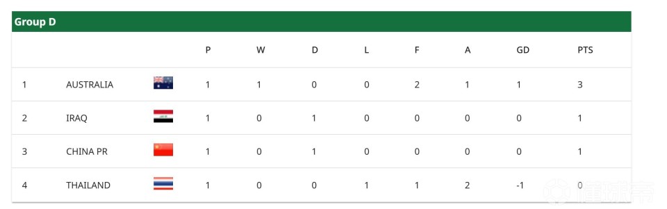这个排名清晰地揭示了当前的处境:澳大利亚占据主动,而中国与伊拉克将在第二轮为出线资格展开直接或间接的生死竞速。